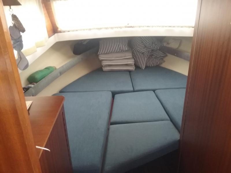 Neue Polsterung Kajüte, Aussen Persenning, neu, sowie im Hafen Weltumsegler.