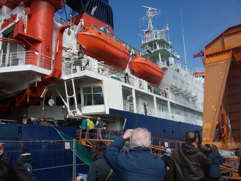 Bilder von Heute Open Ship Forschungseisbrecher Polarstern des AWI Alfred Wegener Institut für Polar und Meeresforschung. Wir sind nicht draufgegangen zuviel Menschen 3h Wartezeit. Liegt in der Lloyd Werft in Bremerhaven seit 1 Woche kam von der Antarktis war ca. 8 Monate unterwegs.