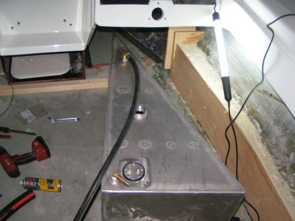 Das ist nur eine Klappe, darunter befindet sich ein riesen Stauraum für ANker und Leinen und alles andere, der ganze Raum zwischen beiden TAnks ist frei verfügbar