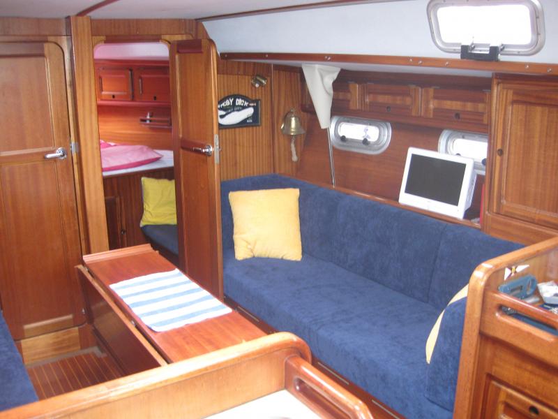 die Bilder der "Navigation" hatte ich ja schon eingestellt. Hier mal ein Blick in die Sitzecke mit den neuen Polstern und Kissen: