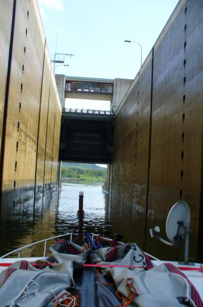 in der Schleuse hat man wenigstens Zeit gemütlich einen Kaffe zu trinken