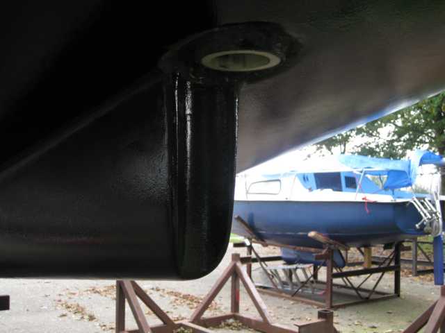 ![]() Mittwoch morgen: Anhänger geliehen, Ruder aus der "Kellerwerft" geholt und verladen und auf nach Holland! ![]() Hafenmeister angesprochen: Könnten wir das Boot mal eben umsetzen, sodaß ich das Ruder wieder einbauen kann? - kein Problem! "Pole-Position" dann noch schnell ausgerichtet (damit "senkrecht" auch "senkrecht" ist) und Ruder provisorisch eingesetzt... Mit Keilen ausgerichtet und Position mit Epy-Spachtel gesichert - und ab nach Hause.... Ende Tag 1! Donnerstag: Helga zur Unterstützung mitgenommen (allein auf dem Bauch liegend laminieren und gleichzeitig Glasmatten vorbereiten wäre schwierig) ![]() Schnell die Unterschiede zwischen Gewebe grob / fein und Standard-Matte erklärt und los gings! 40 Minuten in Bauchlage durch die hintere Schottluke zu "arbeiten" ist schon anstrengend, doch das Ergebnis : ![]() ![]() Schnell noch die Grundierung für das Antifouling gestrichen (90 min)... und ab nach Hause! ![]() Ende Tag 2 Freitag: Ruder wieder ausgebaut - das Lager muß von unten noch mit Epy-Spachtel verschönt werden. Dann die Nahtstelle versiegeln ... Verd.... das Zeug braucht vielleicht lange zum Abbinden ![]() .... Na dann Alternativprogramm: 1. Lage Antifouling streichen (jetzt sieht es wieder schwarz aus.... Helga poliert in der gleichen Zeit die kompl. Stb.Seite und bekommt aus dem Hafen gleich 3 Angebote (ich geb sie aber nicht her )Hab Sie dann zum "Fischessen" an der Grenze eingeladen... Toller Tag - Tolle Aktion ![]() !!