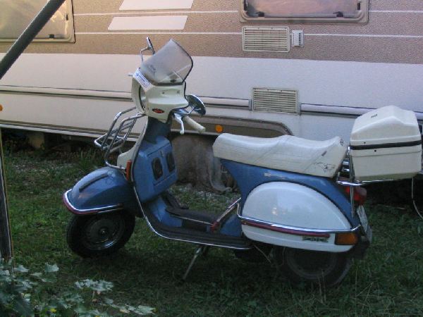 Tour mit einer 30 Jahre alten Vespa an.
