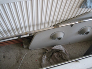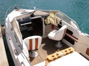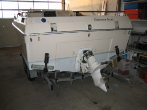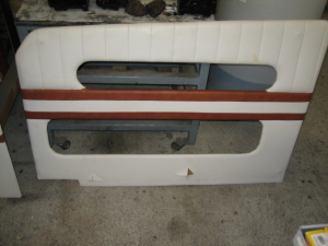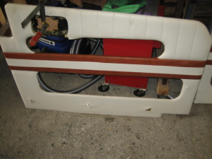 Badeplattform zerlegt Teakholz geschliffen Armaturenbrett zerlegt und vorbereitet Polsterung komplett entfernt Seitenteile hergerichtet für den Einbau. Lautsprecher, Beleuchtung, Schaltung Sitze Demontiert Scheiben ausgebaut Scheibenrahmen zerlegt mit Metallknetmasse wurden die Bohrlöcher verschlossen und verschliffen, zum Pulverbeschichten gebracht