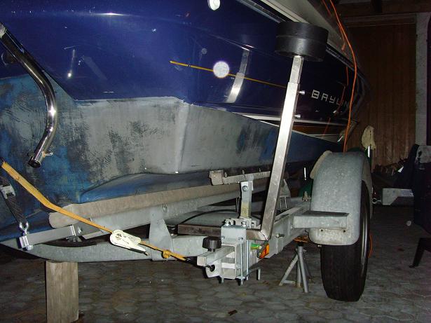 Die seitliche Kurbelstütze habe ich drangeschraubt, damit ich das Boot beim Kranen das Boot von den Langauflagen hochkurbeln kann, damit das Band vom Kran raus kann, wenn es eingeklemmt ist.