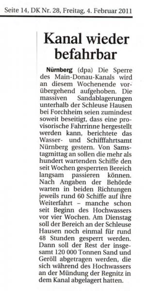 Neue RIS Nachricht 0229/2011: Main-Donau-Kanal (0,1-170,8) 4. Feb. 2011 10:00 Uhr bis 6. Feb. 2011 10:00 Uhr