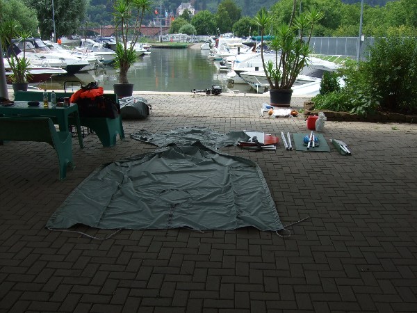 Mein Trip endete in Miltenberg, wetterbedingt. Aber über die rd. 260 km hatte ich genug erlebt. Der Abbau: Schweinehitze, allein, dann doch alles handlich verpackt. Ab in die Stadt (natürlich gelatscht ...). Tagsüber legen hier die Hotelschiffe an, es wuselt nur so. Und Schlag 18:00 sind alle weg, Miltenberg klappt die Bürgersteige hoch, Sendepause. Auf der Strecke zwischen Faust und Zipf's haben weniger als 5 Kneipen Plätze im Freien.