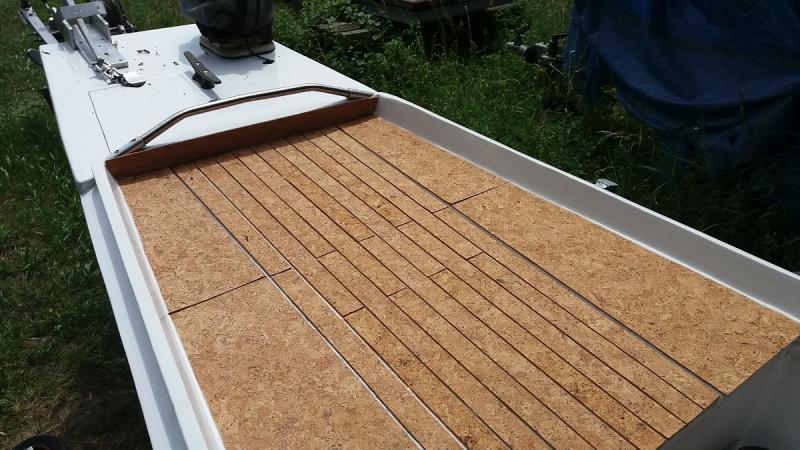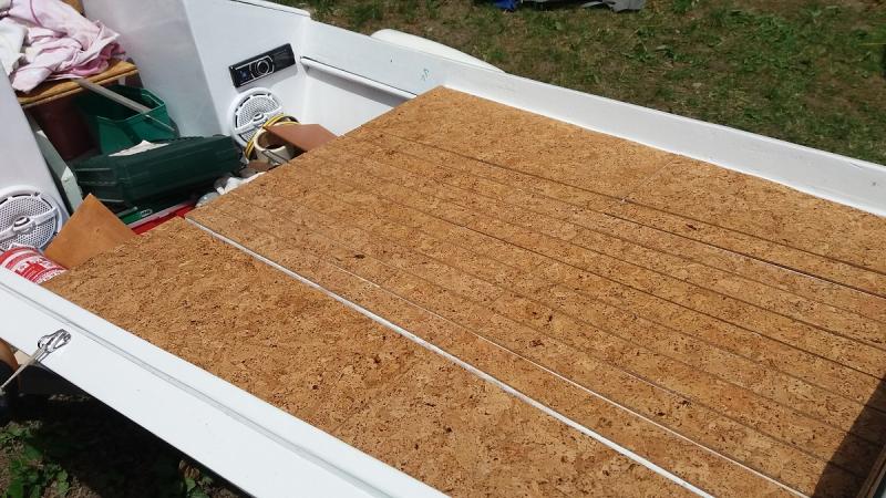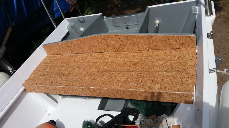 Kork auf den Sitzflächen ist verlegt,nur noch abkleben und verfugen mit Sika