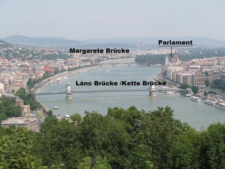 Budapest hat 9 Brücke. Richtung talfahrt: