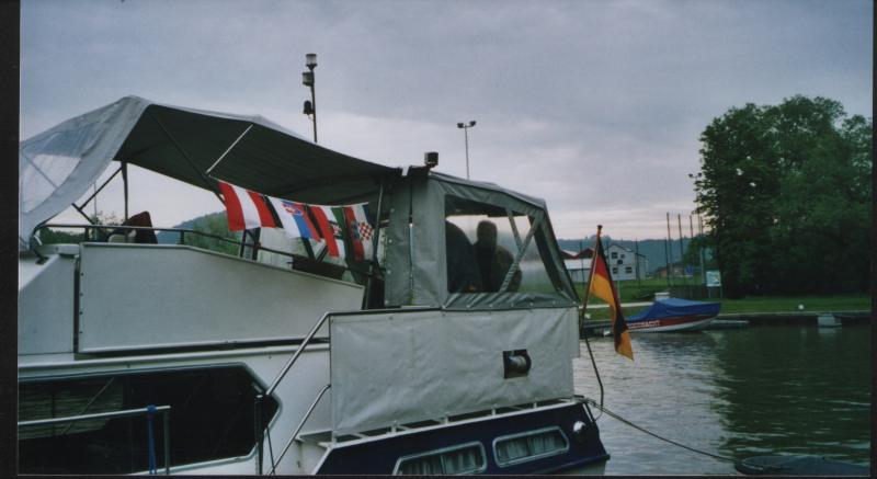 jetzt gings mit neuer Crew weiter und wir hatten keinen mehr dabei der tagsüber den Stoff besorgte. Aber bei den Ösis hatte jedes größere Dorf einen Anleger, wo wir kurzzeitig zum Bunkern festmachen konnten.![]() Das Schleusen hatten wir im Griff, nur an der Schleuse Ottensheim hatten wir ein kleines Problem mit den Schleusenmeister, weil wir gleich hinter einen Frachter eingefahren waren. Die erste Nacht haben wir bei km2067,5 am Campingplatz Willersbach verbracht, hat schöne Stege für Sportboote. Die zweite Nacht lagen wir vor dem KW Ottensheim an einem Ponton der Stadt Ottensheim. ![]() Dann ging es weiter bis nach Obernzell, da hatt es uns sehr gefallen. ![]() Trotzdem das die Fliesgeschwindigkeit nicht mehr groß war, schafften wir wegen der Schleusen nur ca. 65km amTag. Das Wetter wurde immer schlechter und wir mußten uns tüchtig aufwärmen. ![]() ![]()
