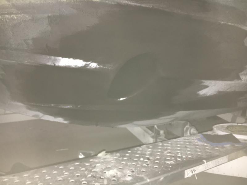 Anschliessend Grundierung und Antifouling aufgetragen, was ich aber nochmal schleifen und mit der rolle sauber auftragen werde.