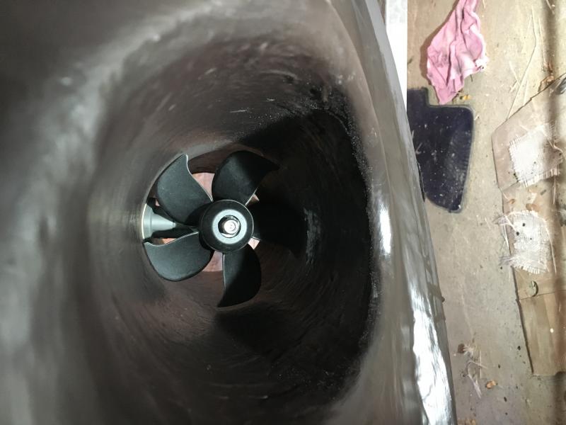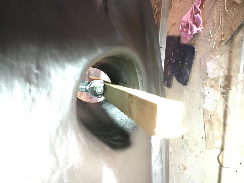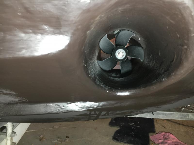 Heute die genaue Position des Antriebes ermittelt und mittels Schablone die Löcher gebohrt und dann mal provisorisch zusammengebaut und überprüft ob der Propeller schön frei läuft